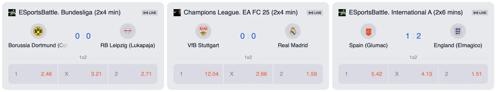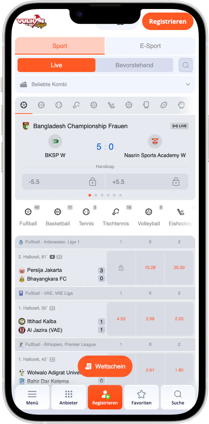 Unsere Live-Wetten bei Vulkan Vegas Deutschland zeichnen sich durch schnelle Aktualisierung, stabile Quoten und eine übersichtliche Darstellung aus – sowohl am Desktop als auch mobil.