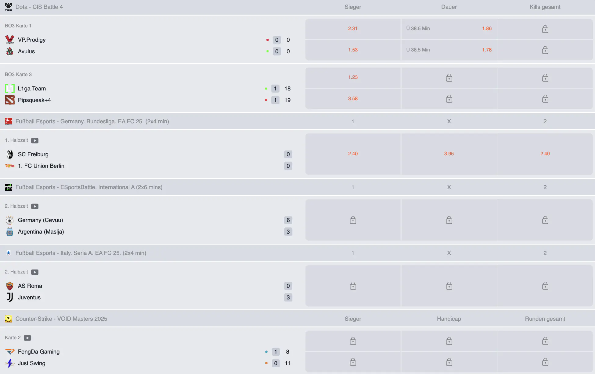 - alle Spiele und Wettangebote